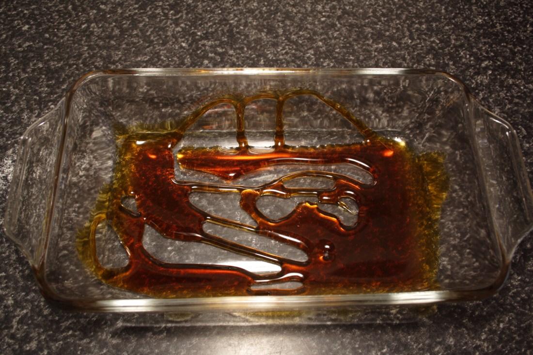 Escogemos el molde, en ésta ocasión he elegido una fuente de horno rectangular de 22 x 12,5 x 6 cm. Echamos el caramelo líquido a gusto y reservamos.