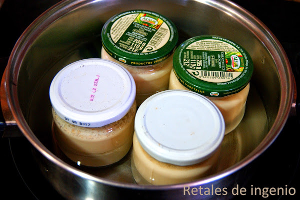 Todos sabemos que para hacer flan en el horno de forma tradicional le has de dedicar tiempo y cuidado, por no decir lo que sube el recibo de la luz cada vez que ponemos el horno en marcha. Así que la idea consiste en hacer la mezcla de los ingredientes, de lo que queráis hacer los flanes, ponerla en botes de cristal, de los de hacer conservas, cerrarlos y colocarlos en una cazuela con agua hasta mas o menos un pelín mas de la mitad de la altura de los tarros.