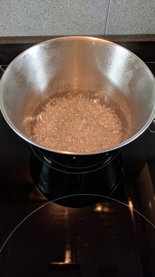 Repetimos todos los pasos pero elegimos una cubeta normal y ponemos la rejilla en el fondo. Ponemos agua que quede siempre por debajo de la mitad de la flanera. Cerramos la olla y programamos menú guiso, menú predeterminada y 12 minutos. Dejar que despresurice sola. A partir de ahí todos los pasos serían iguales