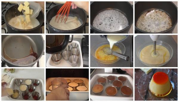 Por otro lado ponemos el horno a calentar a 160ºC y ademas preparamos una bandeja alta apta para el horno y dentro de ella colocamos las flaneras.