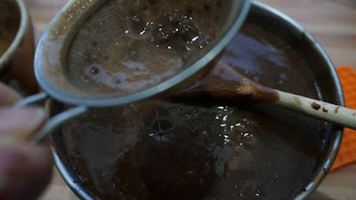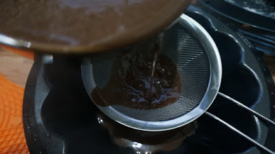Mezcla bien y ahora lo pasas a un molde, puedes untarlo con un poco de aceite, apenas, o con caramelo líquido o nada. Cuélalo también al pasar al molde