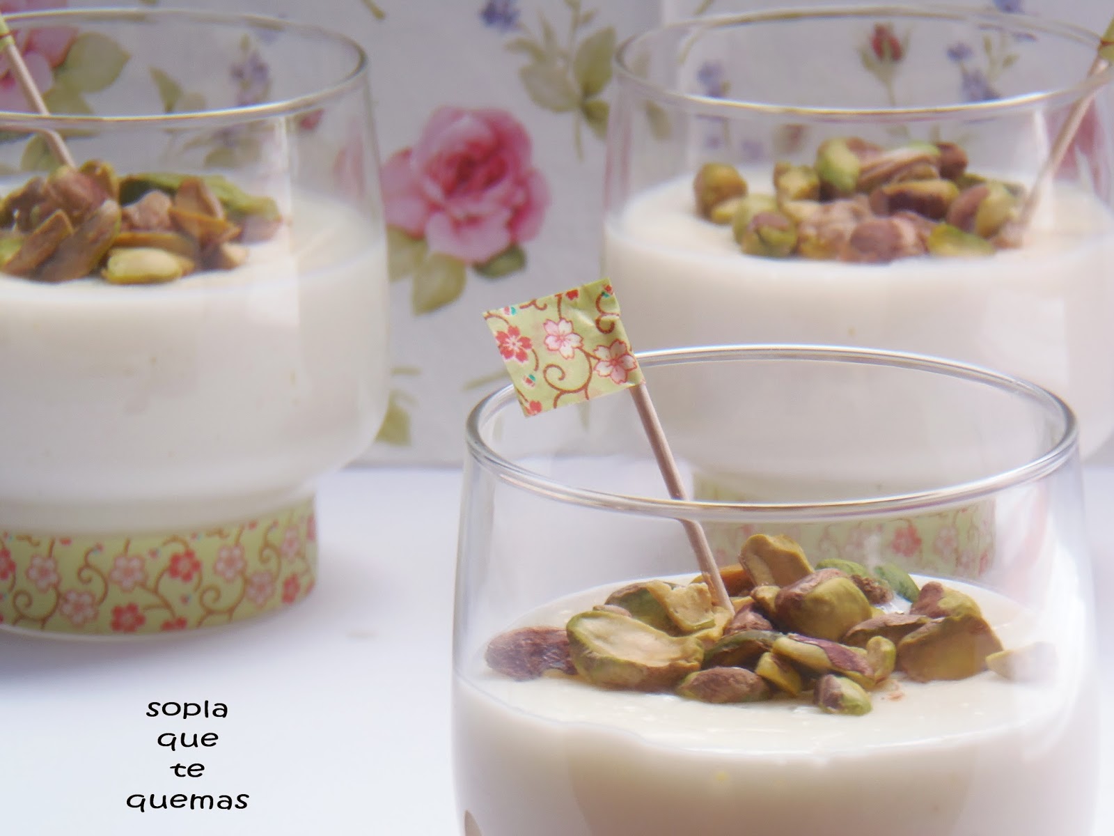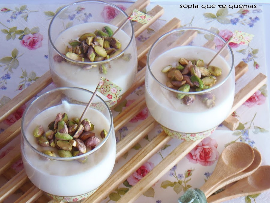 Es un postre muy fresquito y nada pesado, perfecto para acabar cualquier comida, la suavidad del flan y el crujiente de los pistachos es ideal. Hay otra versión con agua de rosas, que me encantaría probar tambien, pero de momento os dejo que disfrutéis de ésta versión.