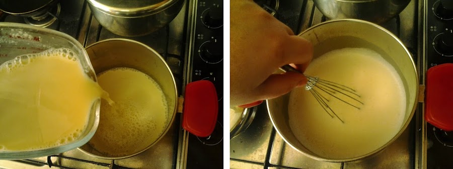 Cuando la leche que tienes en el fuego comience a hervir, añade el otro medio litro y remueve hasta que vuelva a hervir.
