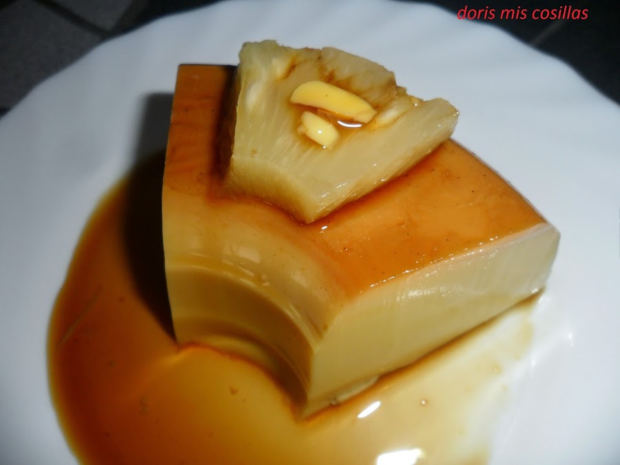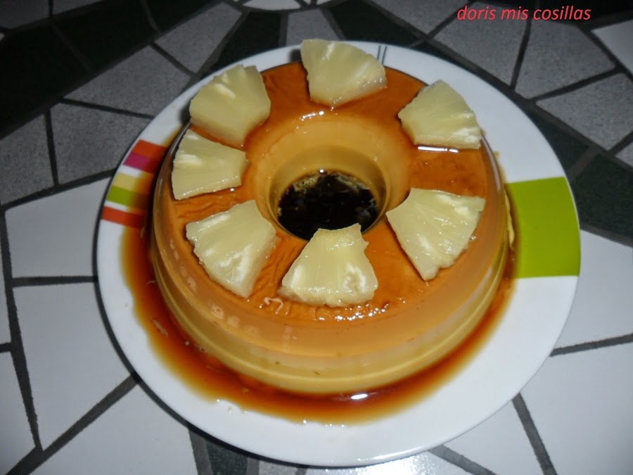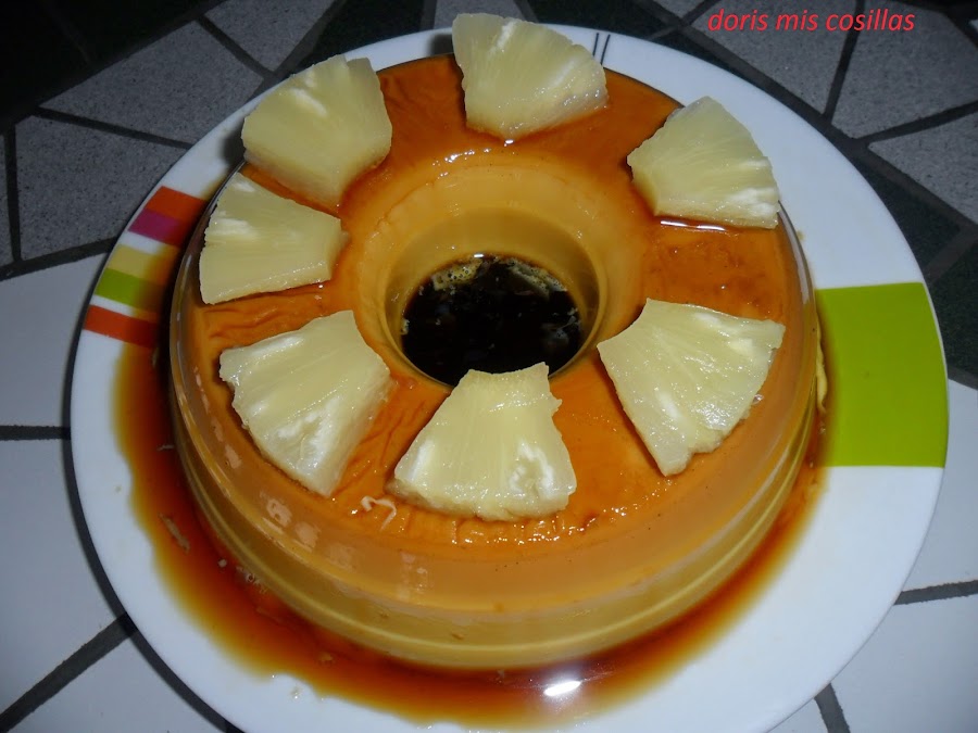 Desmoldamos sobre una fuente plana y adornamos con rodajas de piña o al gusto.
