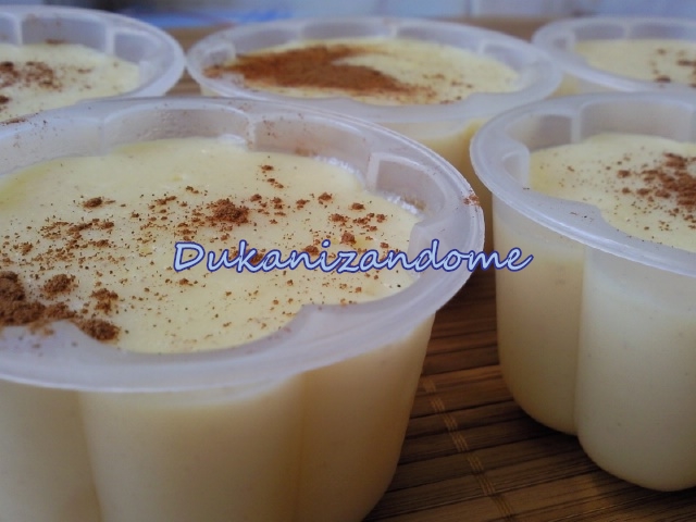 De medio litro de leche separamos un vaso de leche y ponemos en un bol para desleír el sobre de flan, el resto de la leche la ponemos en un cazo con un poquito de canela molida. Poco antes de que empiece a hervir añadimos la mezcla del bol y movemos sin dejar de parar hasta que comience a hervir y en ese momento apagamos el fuego y añadimos el edulcorante. Yo puse una cuchara, pero eso es a gusto, lo probáis por si os gusta más dulce.