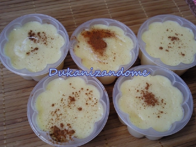 Volcamos el flan en los moldes y dejamos entibiar un poco antes de meterlo en el frigo. Yo puse un poquito de canela molida en cada uno de ellos.
