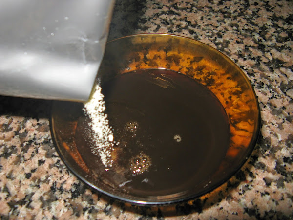 Mientras la nata (crema de leche) va calentando en el café disolvemos bien el sobre de flan