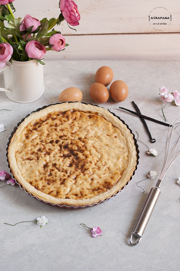 Para terminar la semana os dejo una especialidad de la cocina francesa, un flan con aspecto de tarta. Buscando por Internet esta receta he encontrado algunas diferencias entre distintas recetas. Incluso preparada sin base. En cuanto a la base podemos hacerla nosotros o comprar una base de masa quebrada, aunque también la he visto publicada con base de hojaldre. El relleno no es más que una crema pastelera horneada, a la que le podemos añadir un poquito de ron, aunque yo no lo he hecho porque lo tomaban niños. Iba a ponerle nata (crema de leche), pero se me olvidó hacerlo, aunque el resultado ha sido estupendo sin ella, por lo que si queréis prescindir de las calorías que le aporta la nata (crema de leche) podéis hacerlo, ya veis que el resultado es estupendo sin ella.