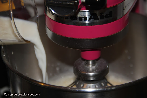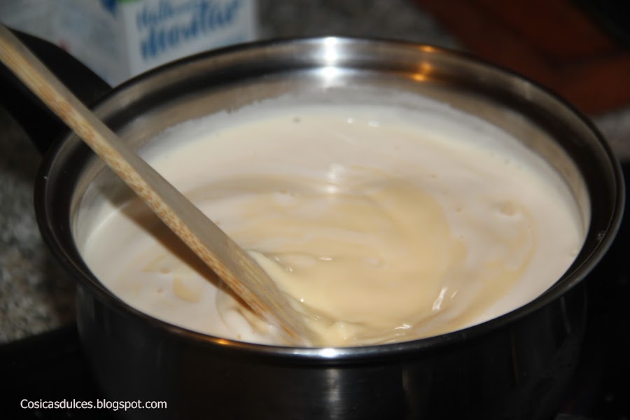Incorporamos seguidamente la leche y la nata (crema de leche).