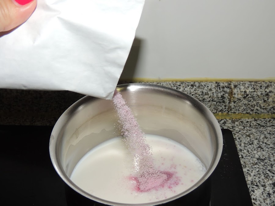 Se calienta la mitad de la leche a fuego medio y se añade el sobre de gelatina.