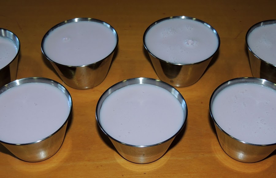 Se meten en el frigorífico unas cuatro horas y, al sacarlos, se desmoldan con ayuda de un cuchillo y se decoran con las frutas del bosque en almíbar.