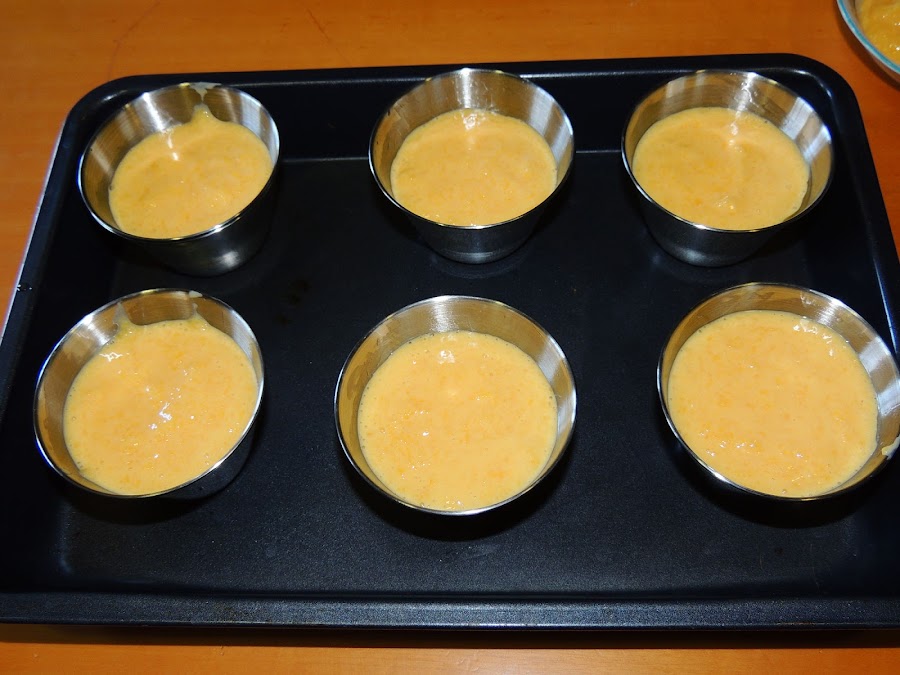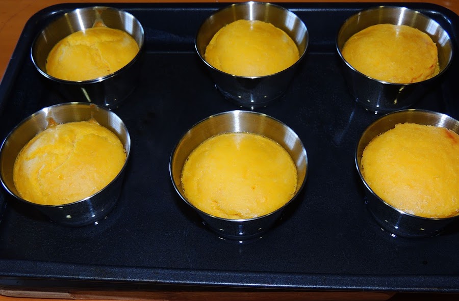 Y se meten al horno al baño maría de 35 a 40 minutos, o hasta que al pincharlos con un palo de brocheta salga limpio.