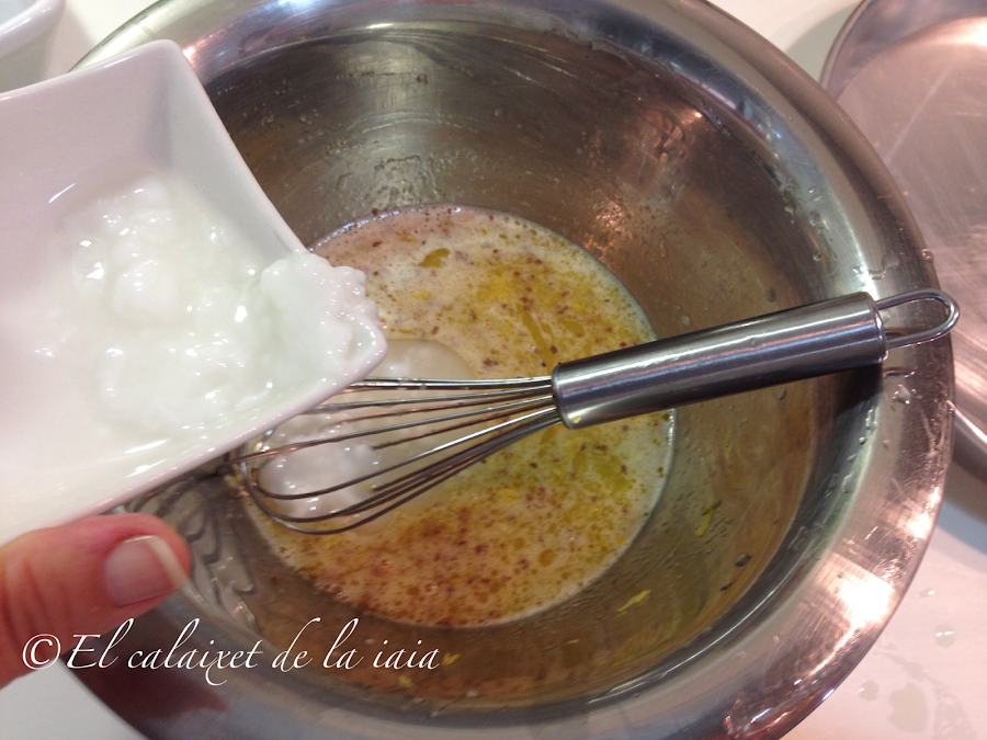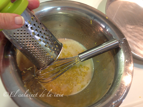 Lavamos bién un limón e incorporamos la ralladura de medio. Procurad no rallar la parte blanca porque amarga