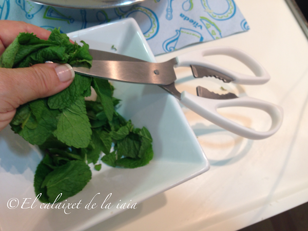 picamos muy pequeña la hierbabuena o la hacemos con las tijeras de cocina