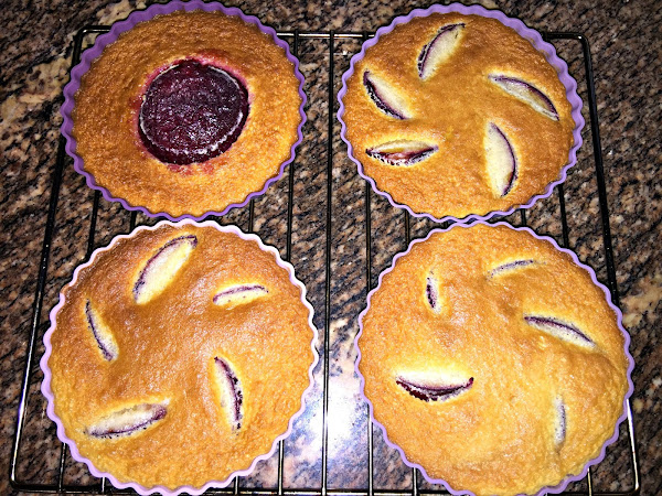 - Mientras reposa la masa, vamos a preparar las ciruelas. Las lavamos, secamos y las cortamos por la mitad para poder retirar el hueso. En mi caso, al usar moldes individuales pequeños, las corté en rodajas, sino las usamos en mitades. Siempre con la piel.