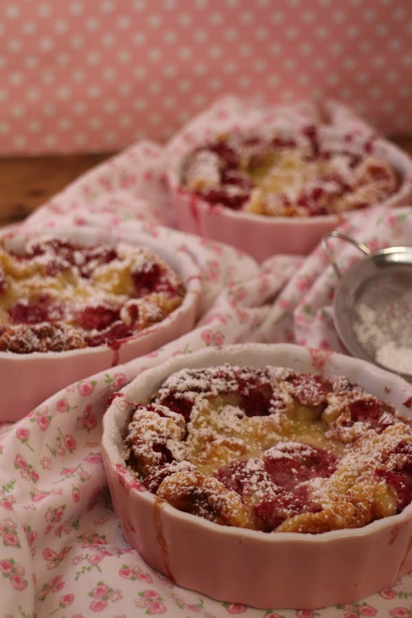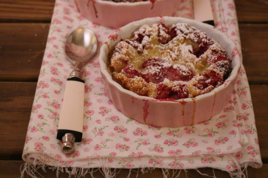 Es una receta muy sencilla para tomar horneada la fruta de temporada. Es la versión del clásico clafoutis que se hace tradicionalmente con cerezas enteras, sin quitarlas el hueso, horneándolas en un molde bañadas con una crema líquida hecha con huevos, harina, leche, mantequilla y azúcar.