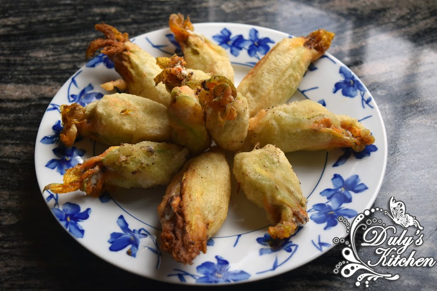 El otro día dando un paseo por el huerto de mis suegros cogí unas flores de Calabaza. Las flores dan un toque muy especial a platos y ensaladas, y con éste tipo de flor se pueden realizar varios platos. Hoy os traigo, Flor de Calabaza rellena. Normalmente las hago fritas con su rebozado pero me pareció muy simplonas para subiros la receta, así que las rellene de queso antes de rebozarlas y quedan riquísimas.