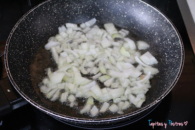 Salteamos la cebolla picadita en una sartén con un poco de aceite.