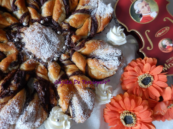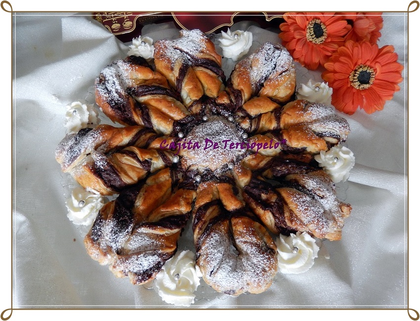 Por fin, la famosa Flor de Nutella. Tanto que me la habéis pedido, pues por fin encontré el hojaldre en forma redonda y aquí tenéis la receta. Yo que no soy muy chocolatera me resistía a hacerla, pero tengo que reconocer que el resultado es genial y muy rápida hecha.