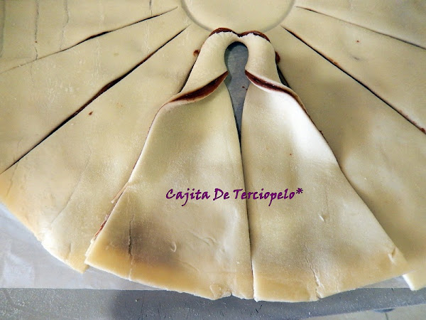 Empezaremos a retorcer las porciones de dos en dos y hacia afuera (aunque igualmente se pueden hacer hacia dentro). Yo les di tres vueltas.