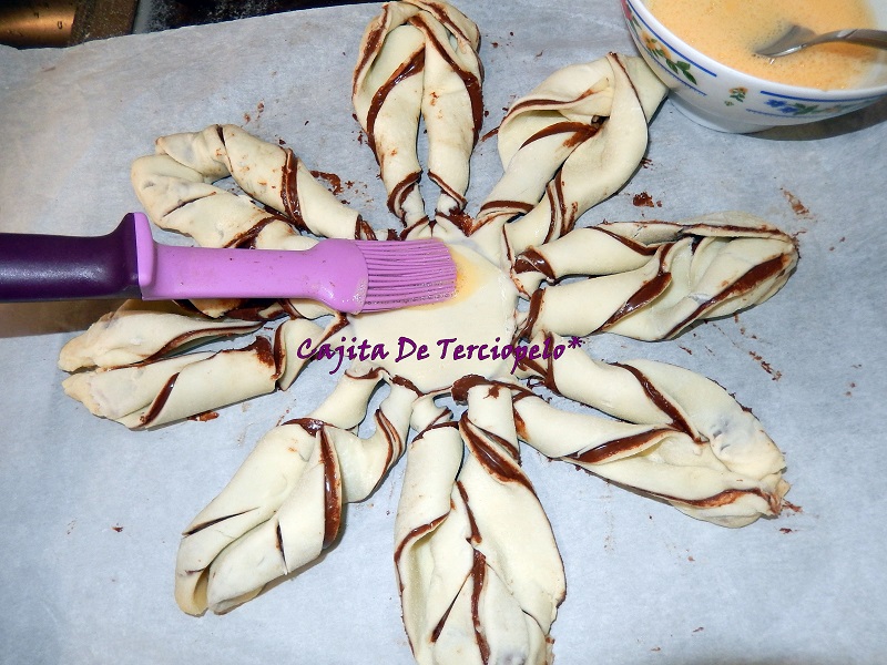 Lo pincelaremos con el huevo batido con la cucharada de leche para que le dé mas brillo.