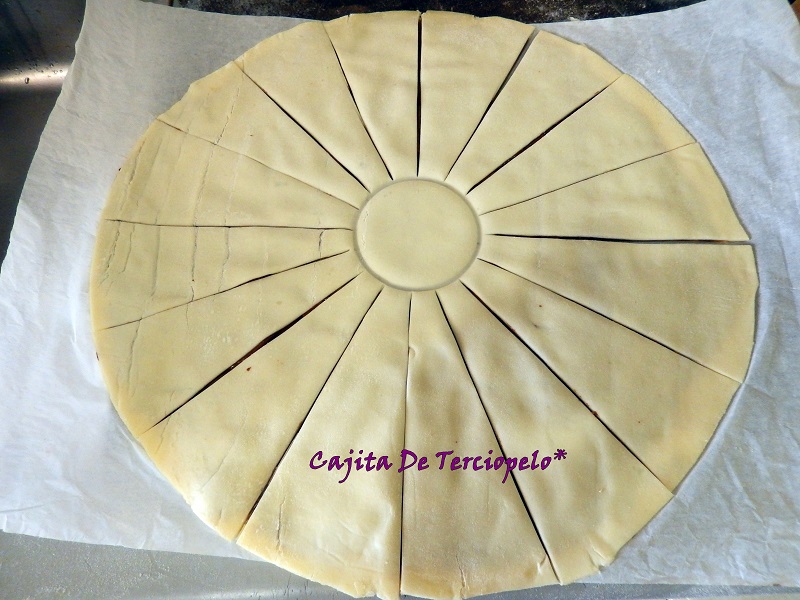 Luego hacemos los otros 3 cortes. El círculo nos ha de quedar en 16 porciones.