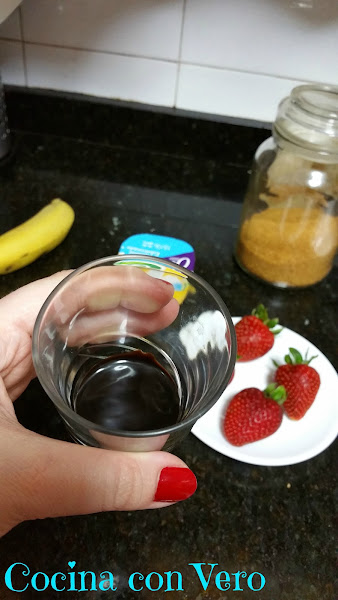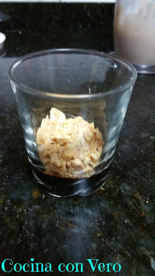 2/ Ponemos el chocolate en los vasos pequeños para que se vaya extendiendo por todo el fondo.