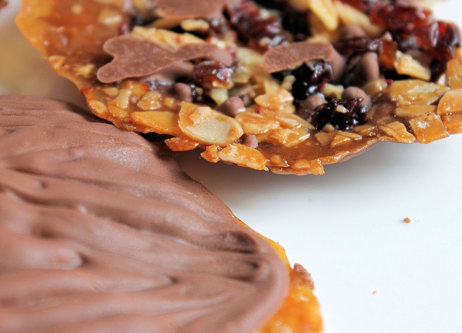 Dar la vuelta a las florentinas y bañarlas por ese lado con el chocolate, con una cucharita se hace perfectamente. Una vez que se haya enfriado ligeramente hacemos dibujos en zig-zag con un tenedor.