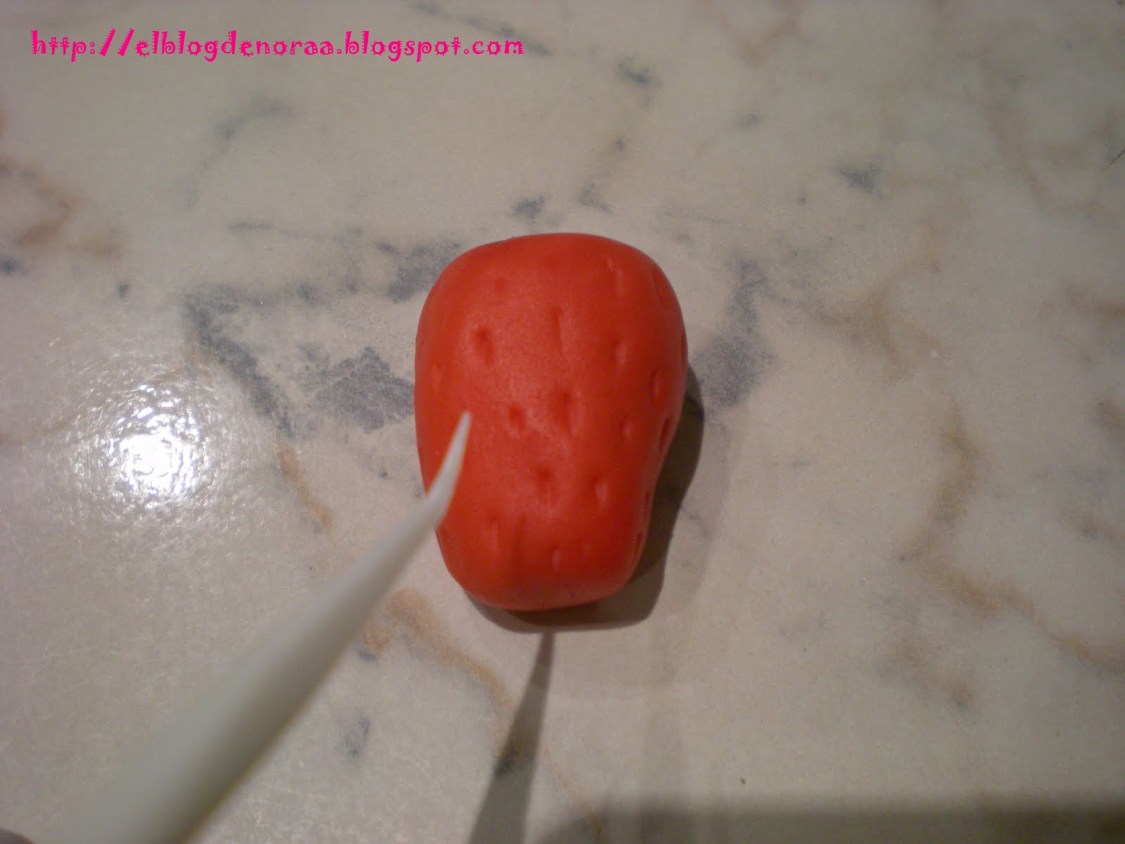 Con una esteca, marcamos como si fuera las pintas de las fresas: