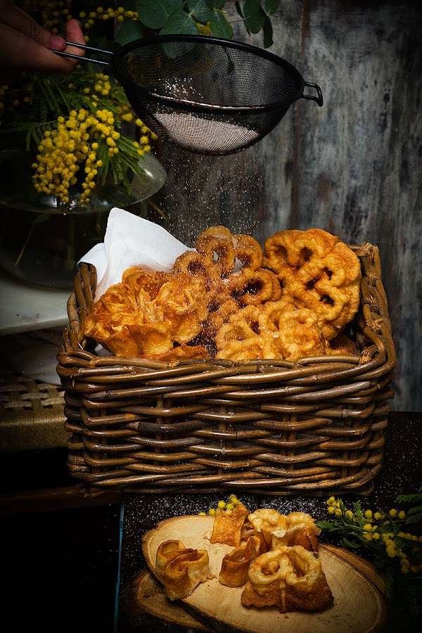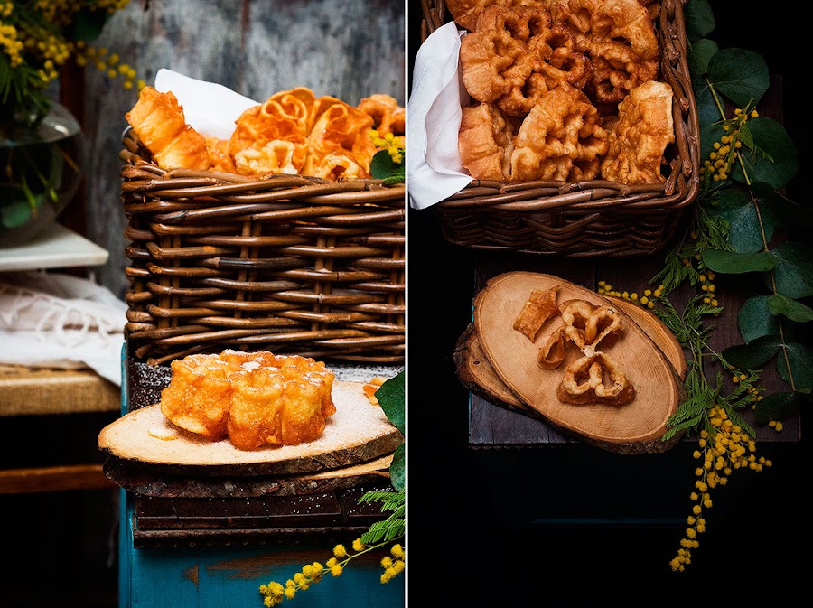 Como comprenderéis después de vivir durante unos cuantos cuantos años el Entroido gallego, no he podido resistirme a publicar ésta receta, junto con las orejas o las filloas, son tan propias de éstas fechas y para las cuales tan sólo necesitaréis comprar el molde de hierro o metal que encontraréis sin dificultad en las ferreterías. La receta no entraña ninguna dificultad, tan solo mezclar los ingredientes y calentar el molde dentro del aceite para que al meterlo en la masa, ésta se adhiera a él.