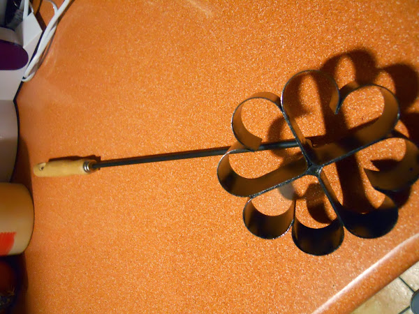 En un cazo poner el aceite de girasol para ir friendo las flores, digo un cazo por que si solo tenemos un molde hay que hacerlas de una en una y debe cubrir bien el aceite. Una vez que el aceite este bien caliente introducir el molde dentro para que se caliente bien y la masa luego se pegue y se despegue fácilmente, sacar el molde del aceite , meterlo en la masa y introducirlo en el aceite que estará a fuego medio, dejar unos segundos y ya al levantar el molde debe caerse la flor ya cuajada, sacar las flores en papel absorbente de cocina y rebozarlas por azucar.