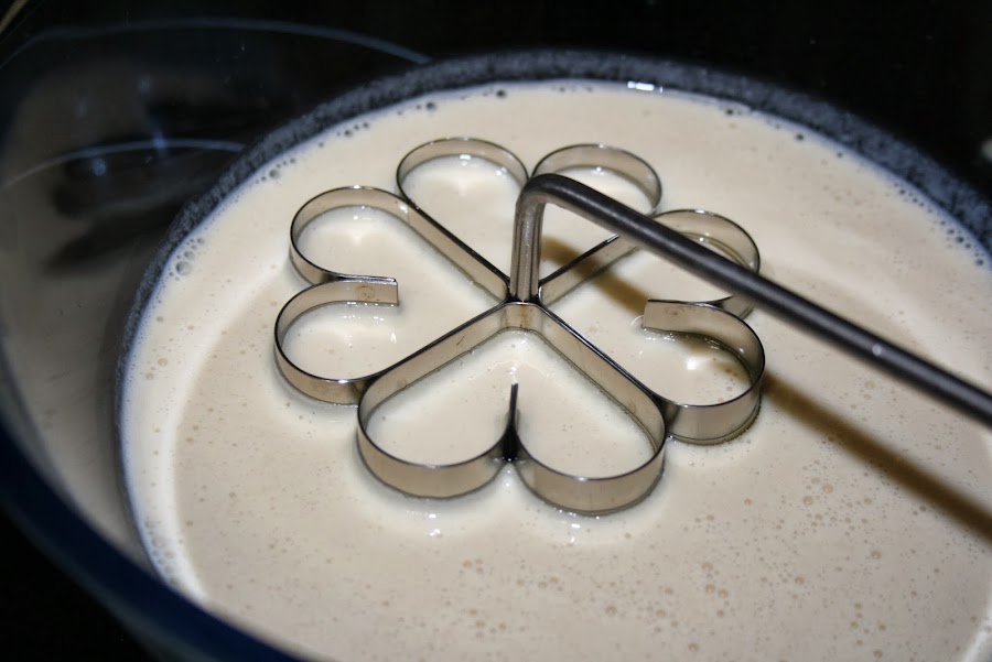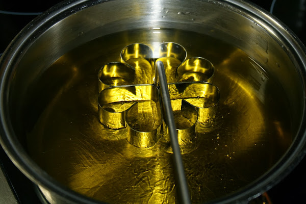 Pasar despacio el molde al aceite de forma que quede bien sumergido, esperar unos segundos y sacudir el molde para que se despegue la masa.