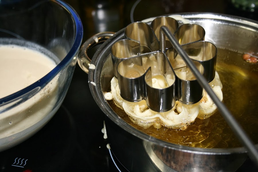 Como nota final , deciros que es importante que controléis la temperatura del aceite según vayáis viendo.Yo hice lo siguiente:si la flor se doraba mucho, ponía el fuego moderado pero entonces la flor salía peor formada y tenía que volver a subirlo.