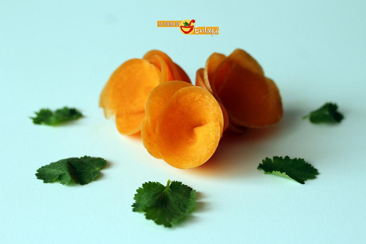 En muchas ocasiones, la presentación de los platos a la mesa, puede ser una asignatura pendiente. Por eso hoy te muestro cómo preparar estas Flores de zanahoria que darán un toque vistoso a tus mejores recetas.