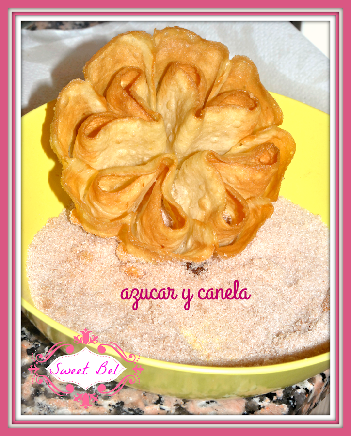 Cuando este doradita, sácala, a un papel absorbente y seguidamente, la pasas por azúcar y canela