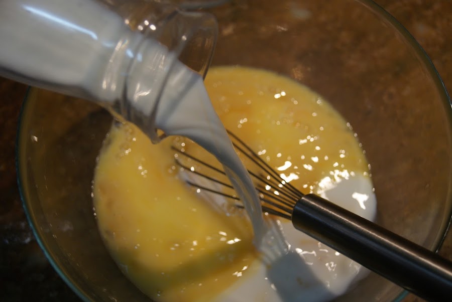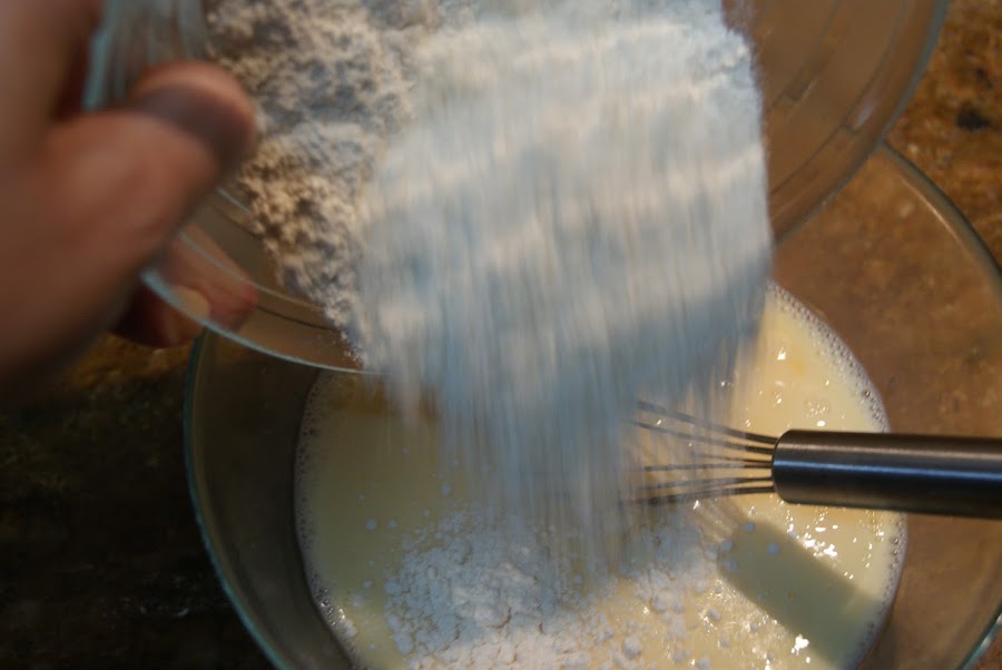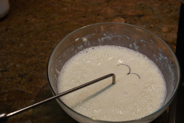 Introducimos en el batido el molde bien caliente pero sólo hasta la mitad del molde.