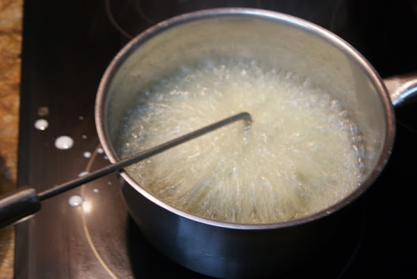 Pondremos un cazo al fuego con aceite y la piel del limón para aromatizar el aceite.
