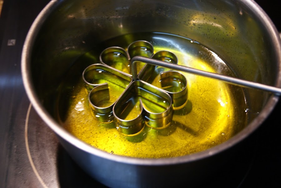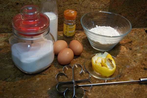 Hola holaaa!!! Un postre de los tradicionales. Estas flores me las enseñó a hacer mi amiga Loli Padilla. Siempre está buscando recetas y aprovechamos que nos juntamos en casa de otra amiga, Deli, y las hicimos una tarde. Están buenísimas y son muy fáciles de hacer. Lo único es que hay que tener el molde que os pongo en la foto de los ingredientes. Yo lo compré en una ferretería.
