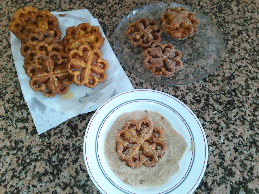 - Si el aceite no está bien caliente o si retiráis el molde antes de tiempo, la flor se abrirá, en las fotos de arriba os dejé una flor abierta precisamente por hacer eso