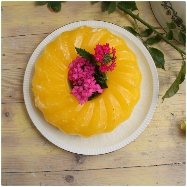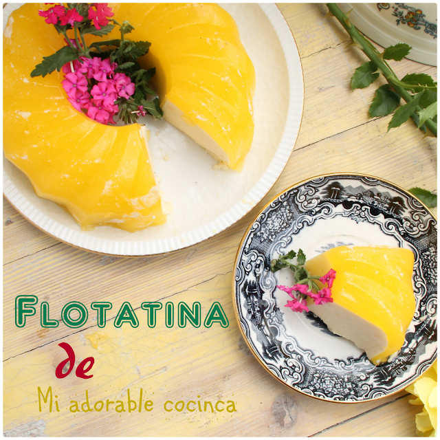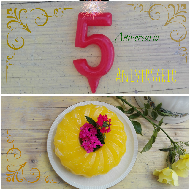 Hoy celebramos el quinto aniversario de el blog de desafío en la cocina , lo vamos a celebrar con una rica tarta flotatina, es una tarta rellena con cobertura de gelatina. Os tengo que decir que es el tercer intento , creí que era más fácil de hacer pero no, influye mucho el que esté bien frío las cremas y gelatinas porque si no se mezcla todo siendo un desastre. También a la hora de desmoldar el molde, este lo hice con molde de silicona, es mas fácil.Como los dos intentos los hice con crema de tres leches ya me cansé de hacerlo igual, a pesar de que esta muy rica. Con ayuda de Conchi y Mari Tere me sugerion que hiciera una mus, con crema inglesa y nata montada (crema de leche), la verdad que salió espectacular.