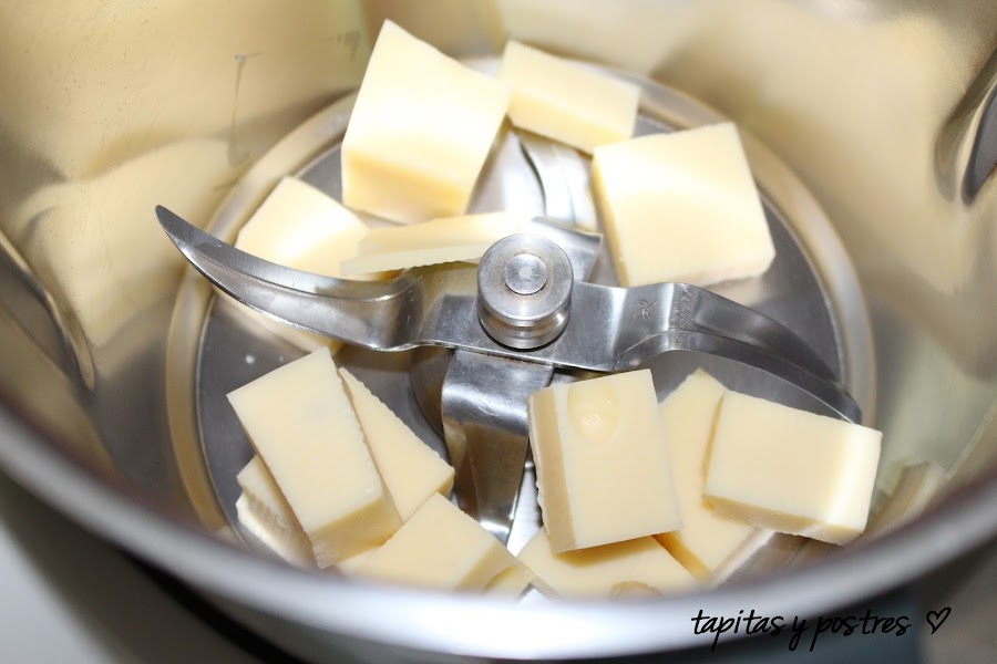 Troceamos lo más pequeño posible el queso y reservamos. Si es posible hacerlo con una picadora.