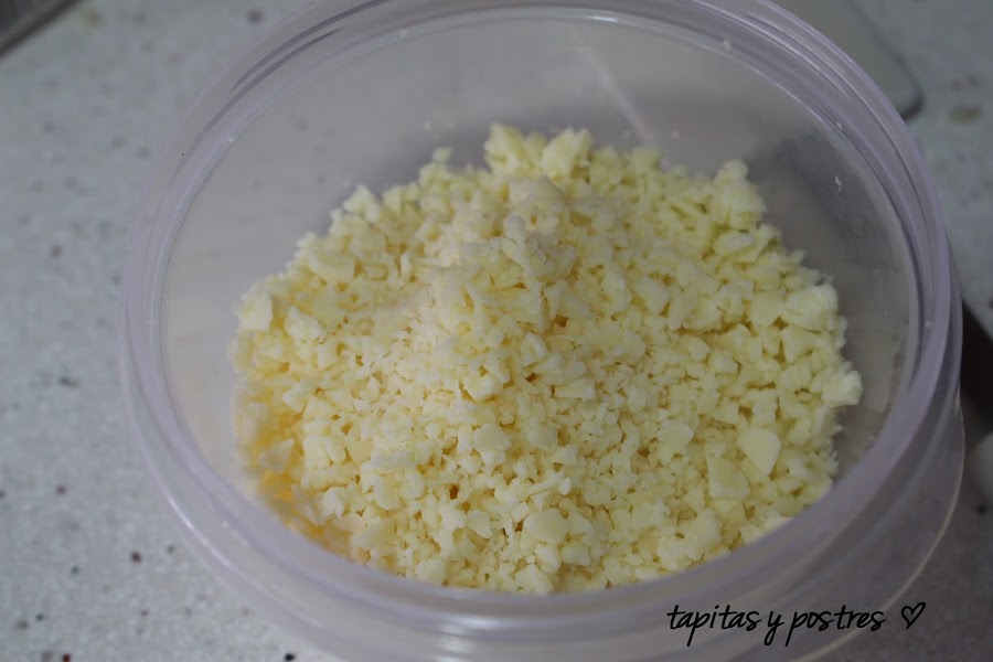 Primero vamos a picar el queso y lo reservamos.