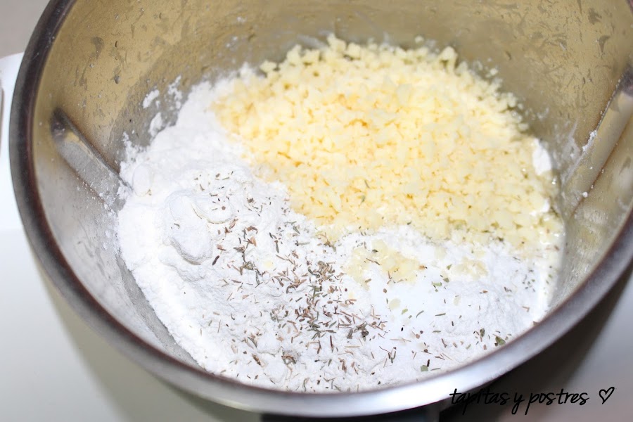 Agregamos la harina, sal, hierbas, queso...