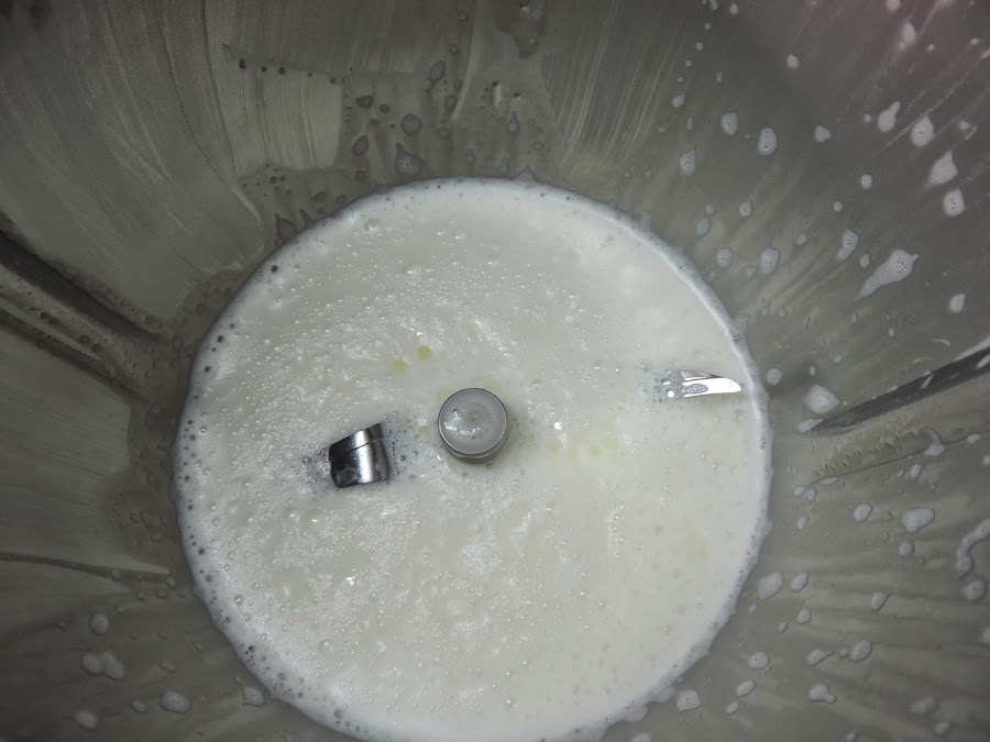 Poner en el vaso la leche, aceite, azúcar y sal,