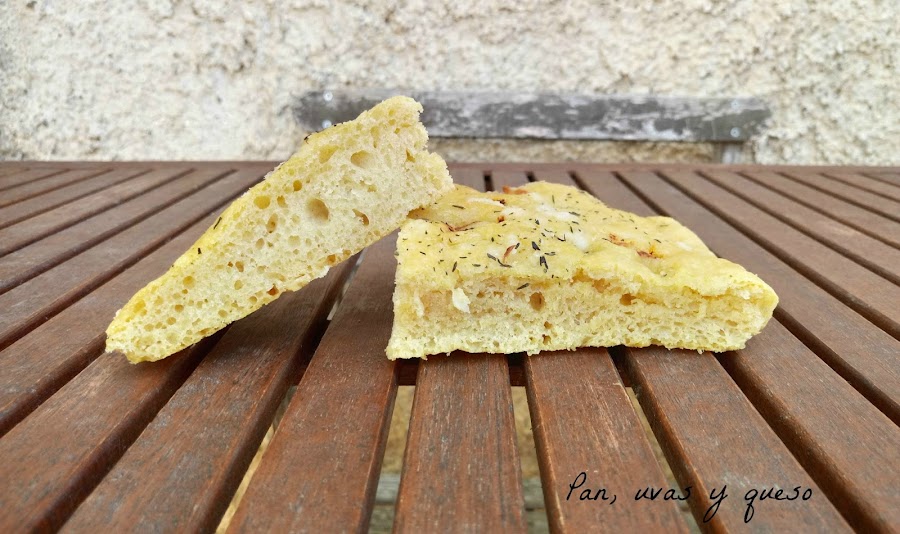 Esta focaccia que traigo hoy es del libro "El aprendiz de panadero" de Peter Reinhart.