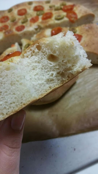 La focaccia es como un pan plano, super esponjoso y rico, es típico en Italia