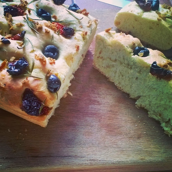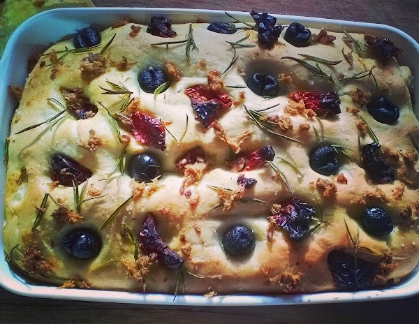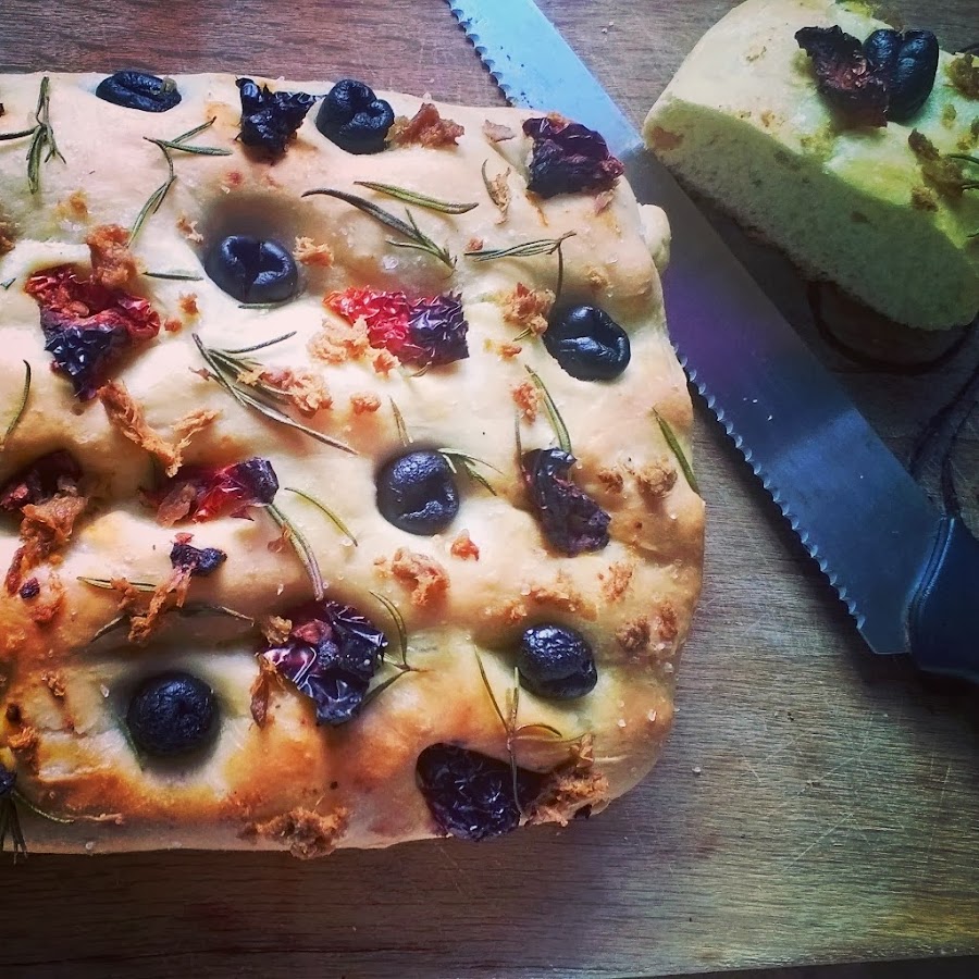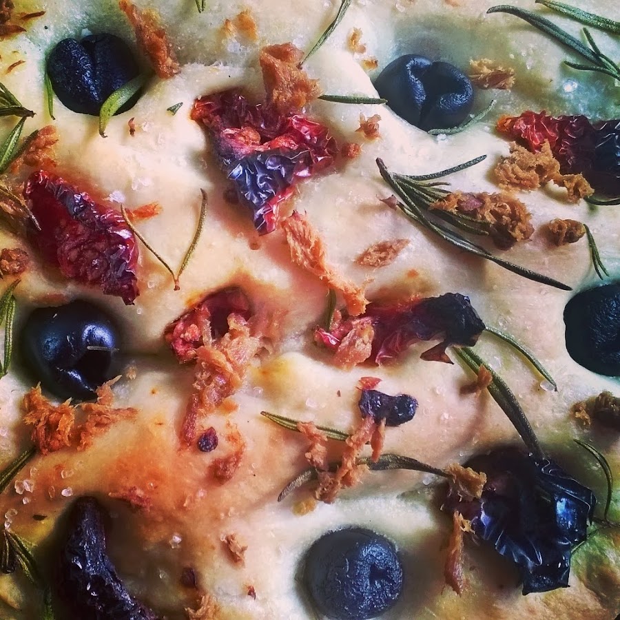 {RECETA DE FOCACCIA DE ROMERO, ACEITUNAS, TOMATE SECO}