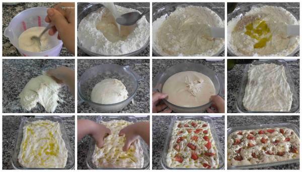 Elaboración de la focaccia de tomate y orégano muy fácil: