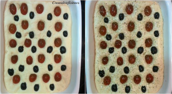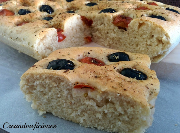 Este pan plano típico de la cocina italiana y que recuerda a la pizza. La podéis hacer con otros ingredientes o incluso sin las aceitunas y los tomates, pero para mi gusto toda esta combinación de ingredientes, la hace mucho más jugosa y rica. Empezamos.