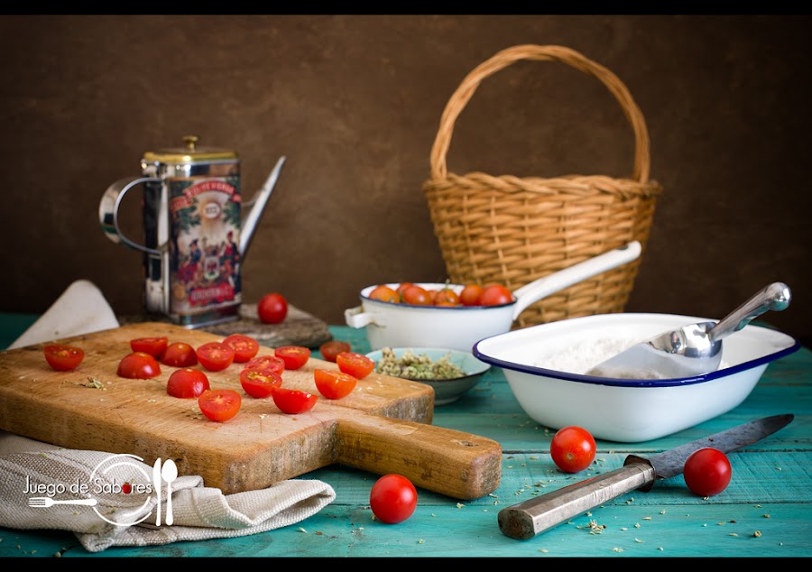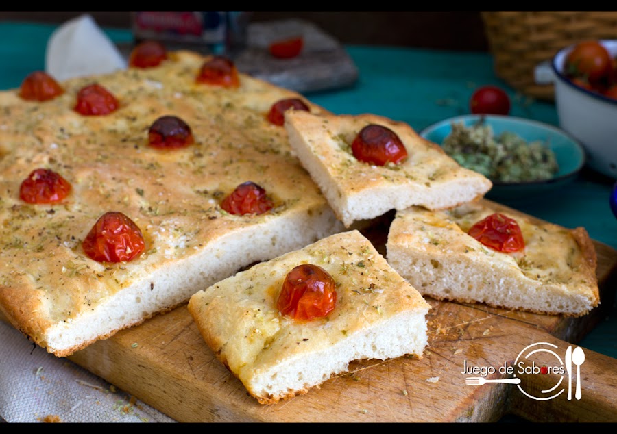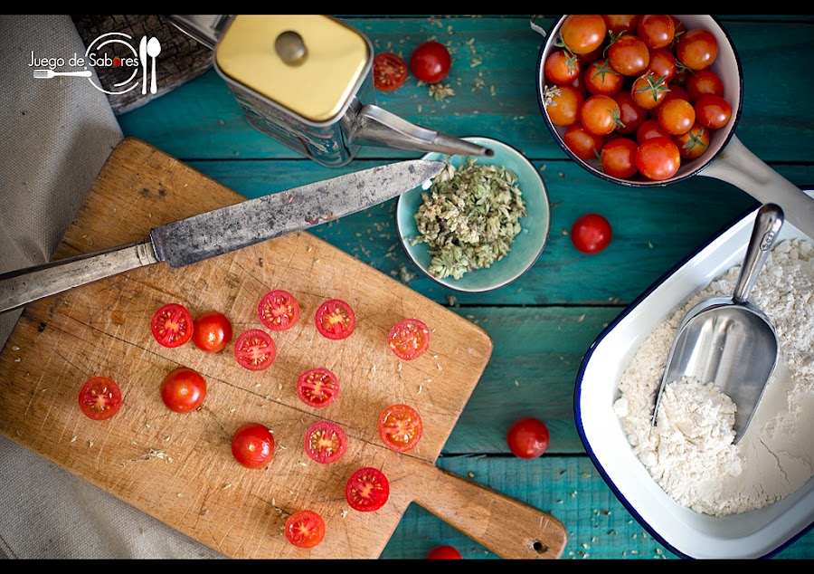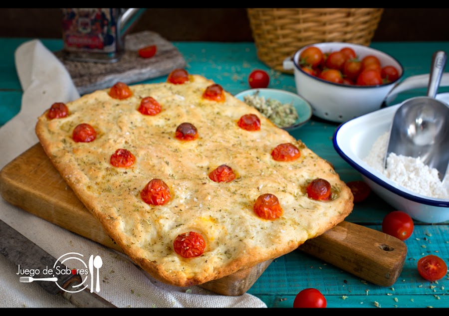 Día festivo por la tarde. Todo cerrado. Se presentan por sorpresa unos autoinvitados. Les preparas un café y algún dulce que siempre tienes en casa. No te atreves a sacar aquel turrón que te sobró de las navidades pasadas y que no hay forma de acabar. Van pasando las horas. El sol se ha puesto y tú no haces más que mirar el reloj. Pasa el tiempo y los autoinvitados no tienen prisa. Empiezas a ponerte de los nervios. Cruzas una mirada con tu pareja. Te ha captado y se encoge de hombros como queriendo decir: “si no queda más remedio”. Visto lo visto propones hacer una merienda cena…pero no tienes pan y por supuesto te niegas a ir a una gasolinera a comprar una de esas masas blandas y semicrudas que alguien ha tenido la desfachatez de denominar pan. Con lo que tienes en casa puedes salir del paso haciendo una focaccia algo distinta a la que ya hiciste en su día. Hoy añadirás unos tomates cherry. Con eso y un buen embutido merendáis de maravilla. Los autoinvitados se van a las tantas y tu pareja te comenta: “Como les trates así los tienes aquí cada domingo”. Cruzas los dedos sobre tus labios y exclamas: “Pues por éstas que son cruces que la próxima vez les meto el turrón que ya debe estar rancio”. Y me voy a dormir que es tarde.